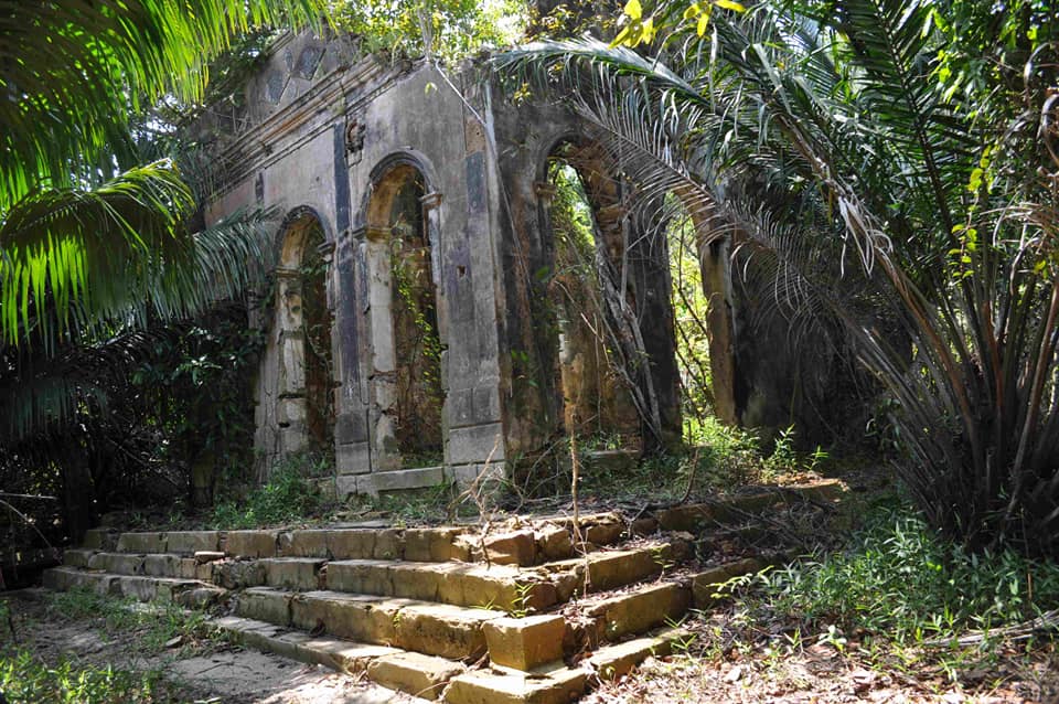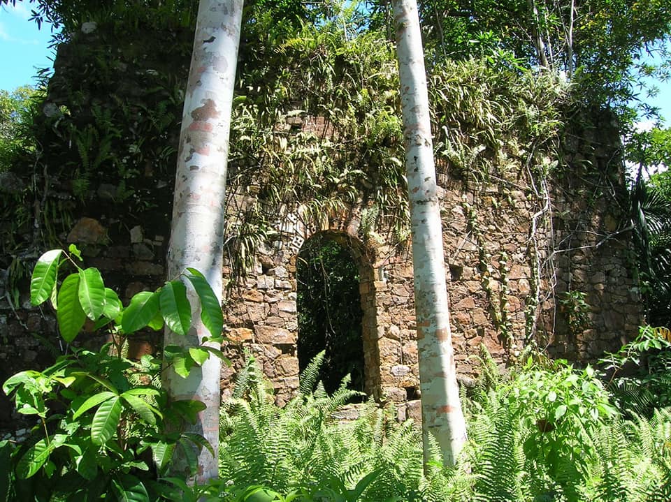 Apesar de a floresta invadir e tomar conta do local, se percebe o estilo colonial na arquitetura das ruínas das casas e comércio que lá existiram.