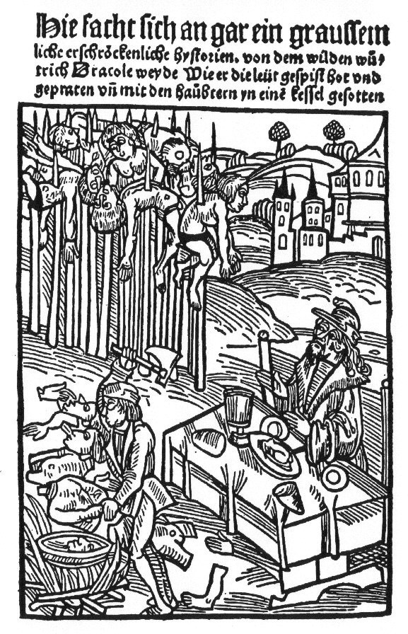 “O fidalgo com olfato apurado”: Nos idos de 1459, para as festividades do dia de São Bartolomeu, o príncipe da Valáquia, que há pouco havia mandado empalar cerca de 30 mil comerciantes e nobres da cidade de Brasov, na região da Transilvânia, ordenou que fosse instalada uma mesa para sua refeição na “floresta” de corpos ali empalados, exigindo dos boiardos (seus desafetos desde sempre), que se juntassem a ele em celebração. Durante a refeição, Vlad percebeu um dos convivas tampando seu nariz para não aspirar o cheiro fétido de sangue coagulado e de dejetos humanos. O príncipe, divertido, ordenou que o nobre de olfato sensível fosse também empalado em uma estaca maior e colocado em destaque junto às outras para ficar acima do mau cheiro.