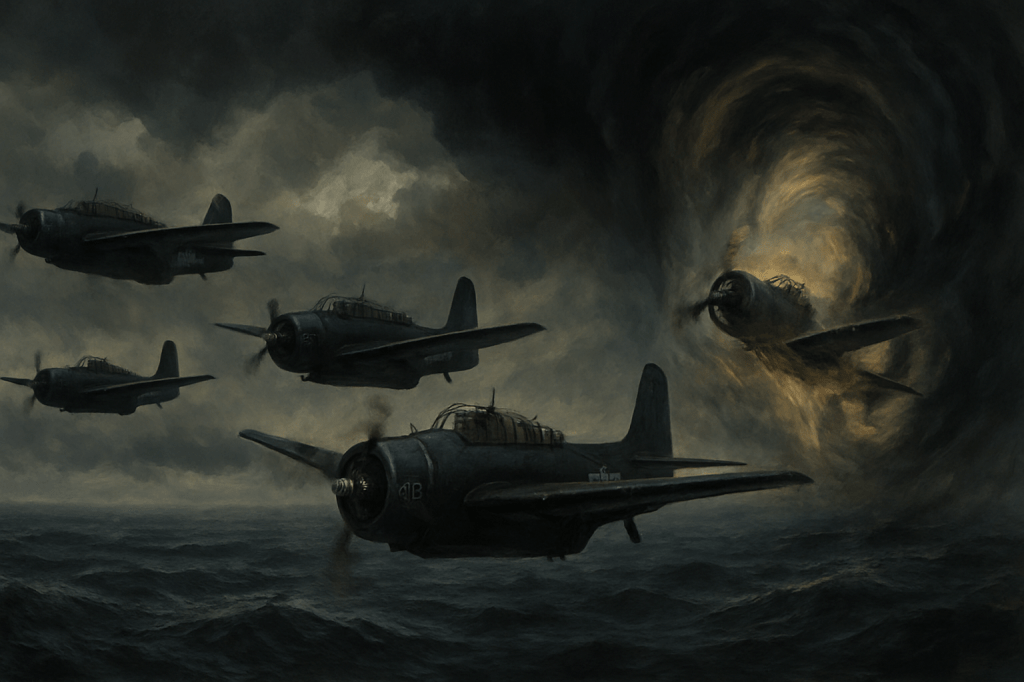 “O mais icônico, sem dúvida, é o do Voo 19. Em 5 de dezembro de 1945, cinco bombardeiros da Marinha dos EUA… desapareceram sem deixar vestígios. Para piorar, um hidroavião PBM Mariner, enviado para resgatar o Voo 19, também desapareceu, levando consigo mais 13 homens.”