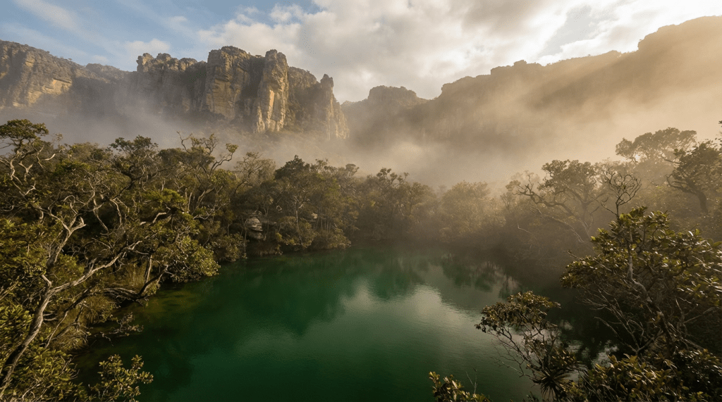No coração do Brasil, onde a terra pulsa com uma energia ancestral e o céu parece mais próximo, estende-se uma cordilheira que sussurra segredos ao vento: a Serra do Roncador. Com seus 800 quilômetros de paredões rochosos que se alongam do Mato Grosso a Goiás, ela ganhou seu nome do som grave e profundo que o vento produz ao atravessar suas fendas durante a noite, um ronco que, para muitos, é a voz adormecida de gigantes ou, quem sabe, de naves de outros mundos. Mas, em meio a toda a sua vastidão mística, nenhum lugar encapsula tão perfeitamente a aura de mistério do Roncador quanto uma pequena e enigmática porção de água: a Lagoa Encantada.