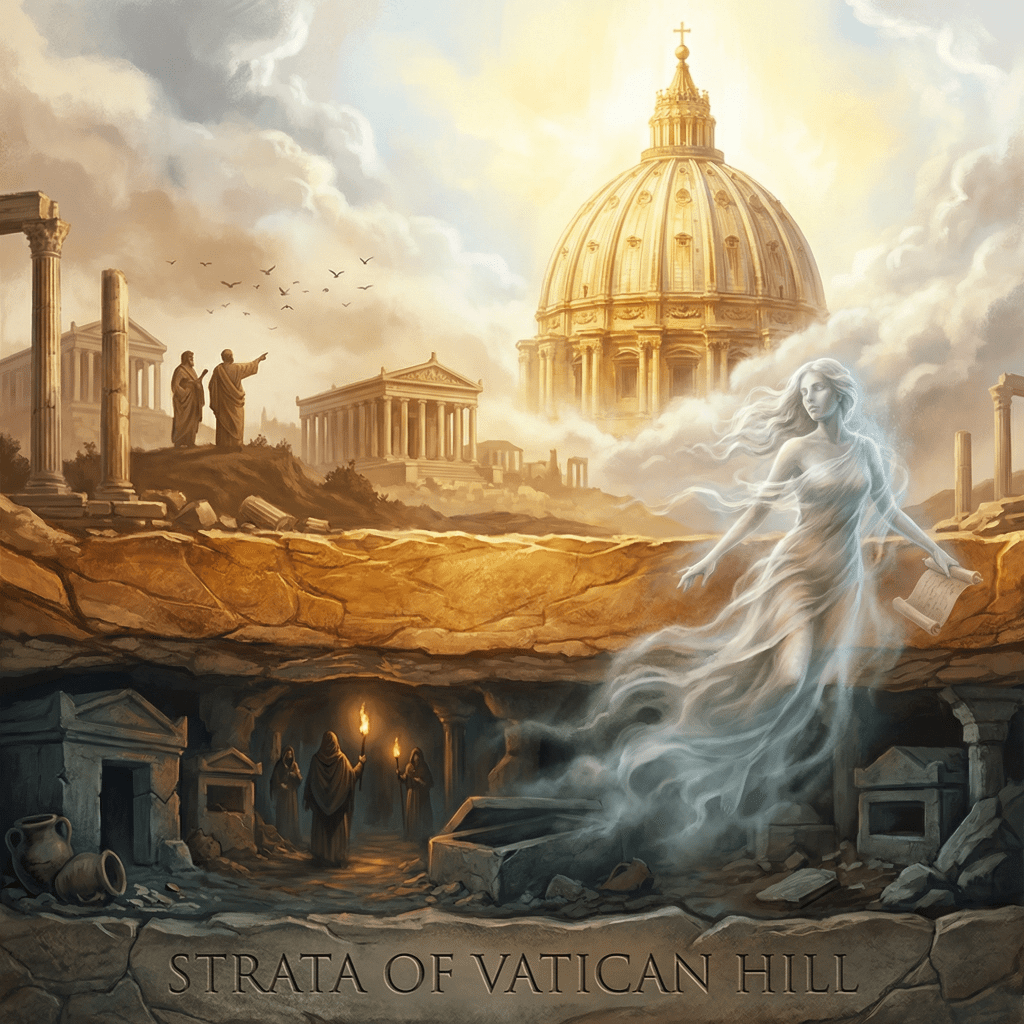A verdadeira história do Vaticano não precisa de deusas inventadas para ser mágica. Pense nisto: o centro espiritual de mais de um bilhão de pessoas ergue-se sobre uma terra que já foi a fronteira entre duas grandes civilizações (romanos e etruscos). Uma terra onde videntes liam o futuro no voo dos pássaros. Uma terra onde, séculos depois, os primeiros cristãos foram martirizados e enterrados em necrópoles silenciosas.