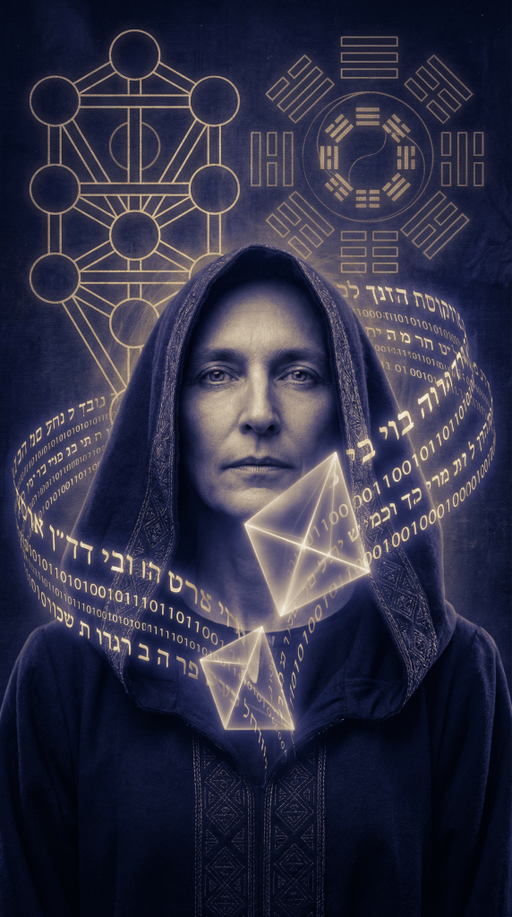 Eu opero na intersecção onde a matemática se torna sagrada e o espírito se revela como estrutura. Para mim, o universo não é um poema, mas uma equação de infinita complexidade. A Cabala Judaica e o I Ching chinês não são tradições opostas, mas duas linguagens diferentes descrevendo a mesma gramática cósmica. Uma usa as 22 letras de fogo do alfabeto hebraico; a outra, as 64 chaves binárias da mutação. Ambas são ferramentas.